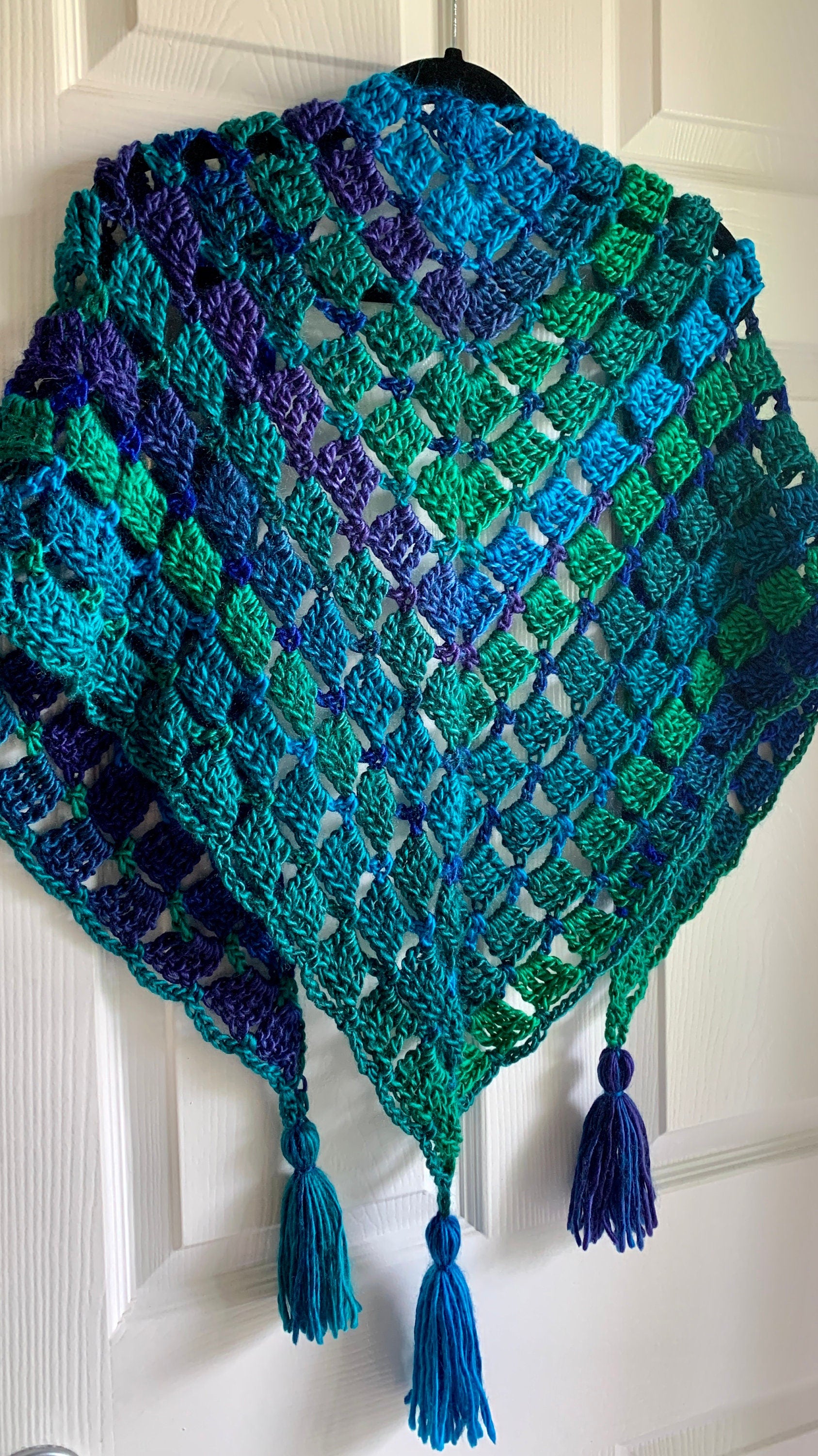 Peacock Plume Handmade Crochet Wrap - Shawl - Scarf